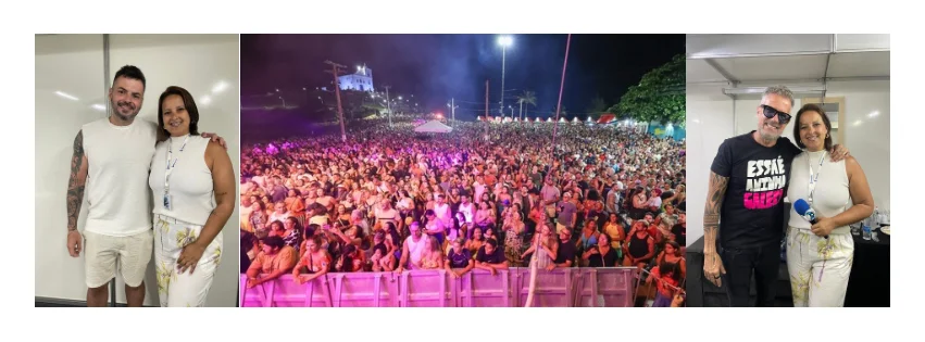 Durante a conversa, o artista ressaltou a importância de festivais gratuitos e bem estruturados, que democratizam o acesso à cultura e fortalecem a música brasileira, especialmente em cidades turísticas como Saquarema.