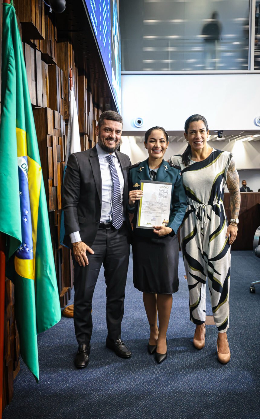 A tenente PM Kelly Patrícia, única mulher a comandar equipe na recente operação policial nos…