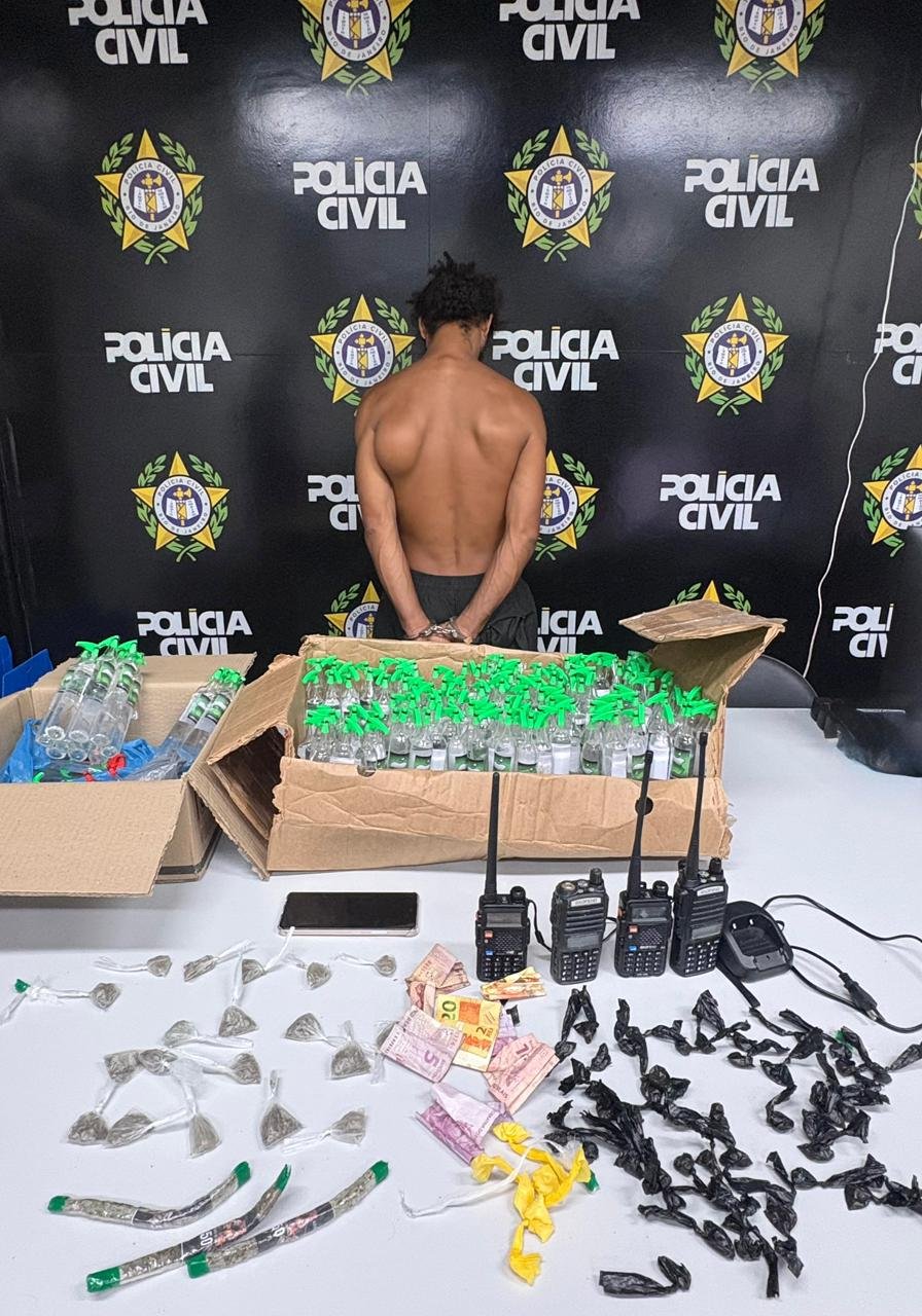 De acordo com a Polícia Civil, durante diligências na localidade, os agentes flagraram o momento em que o suspeito entregava drogas a um usuário em frente a um imóvel. Ao realizarem a abordagem, os policiais apreenderam 53 sacolés de cocaína e um invólucro de maconha.