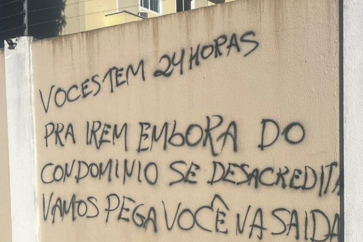 Moradores de um condomínio localizado no bairro José de Alencar, em Fortaleza–CE, foram surpreendidos por pichações com ameaças de morte, que determinavam a saída imediata dos residentes.